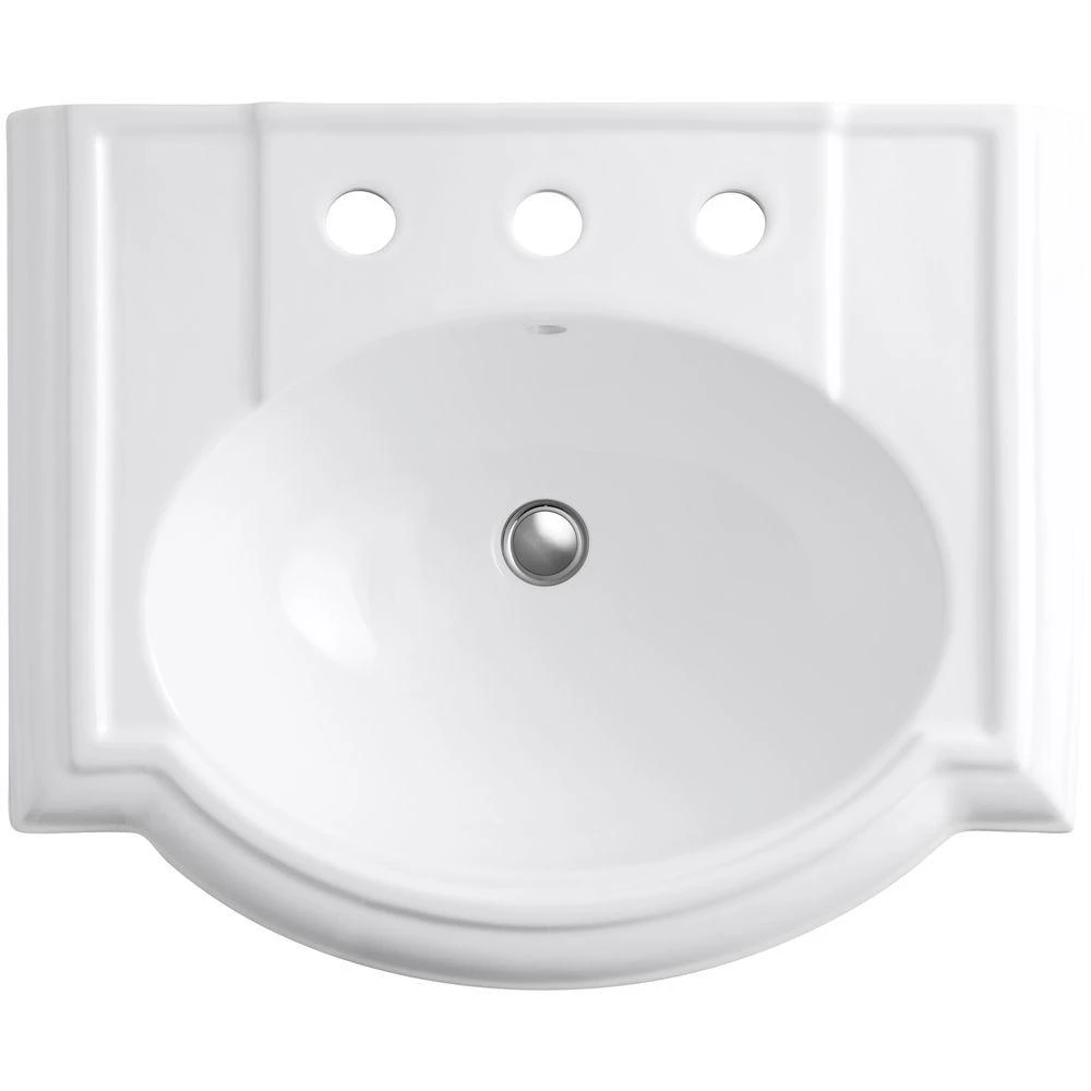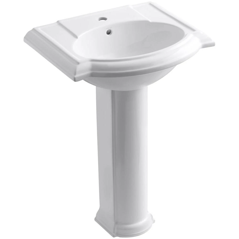 Reminiscent of a bygone era, the molded edges and subtle curves of the Devonshire pedestal sink add distinctive visual impact to your bathroom design. It comes in a variety of KOHLER colors to match your bathroom decor. It is available with single-hole, 4 in. centerset, and 8 in. widespread faucet hole drilling.