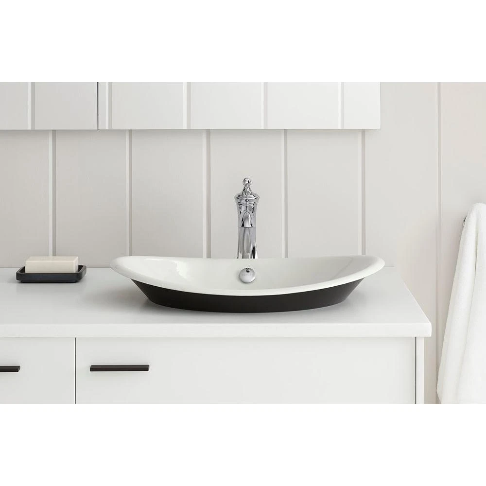 With its gently curved, organic shape, the Iron Plains sink combines distinctive style with the extreme durability; strength and vintage soul of KOHLER enameled cast iron. This above-counter sink features a dual-color design. It lets you choose your own combination of top enamel color and underside paint color for the perfect look.
