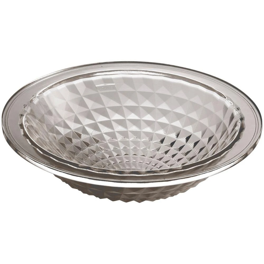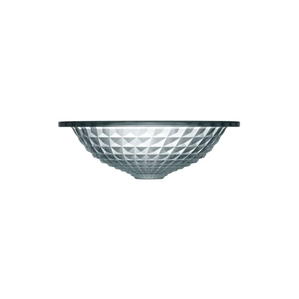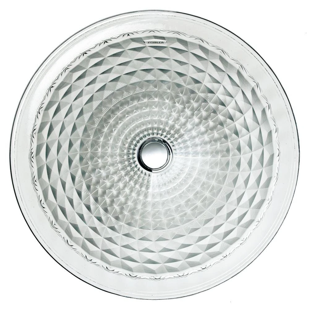 The Kallos glass undercounter lavatory offers a distinctive architectural pattern reminiscent of fine crystal. The lavatory’s design creates stunning visual depth, while appropriately obstructing the view of toiletries stored inside the vanity.