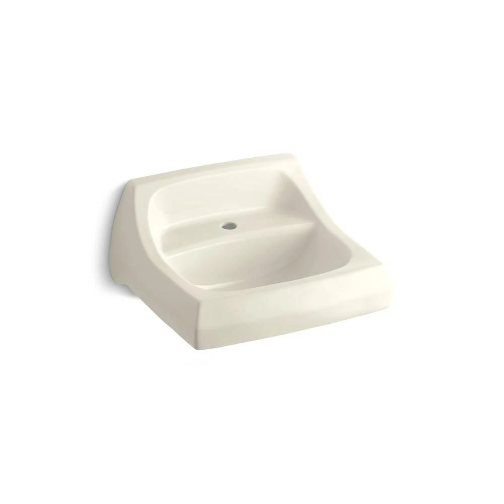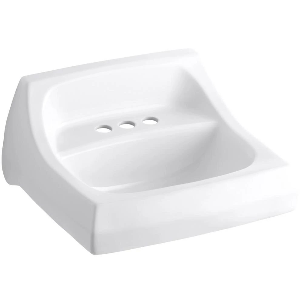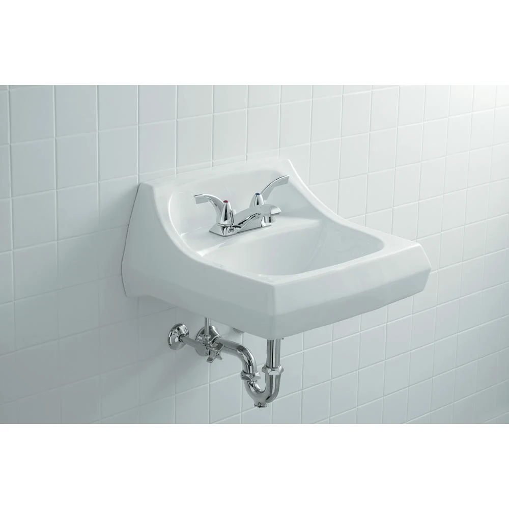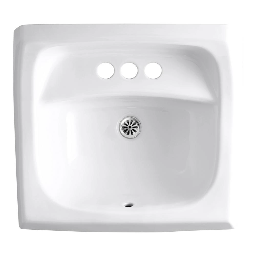 Made of durable vitreous china, this KOHLER Kingston Wall-Mount Vitreous China Bathroom Sink in White features an overflow for reliable operation and a seamless, 1-piece design for an easy-to-clean surface. The sink is pre-drilled for a concealed arm carrier and includes a wall hanger for simple installation.
