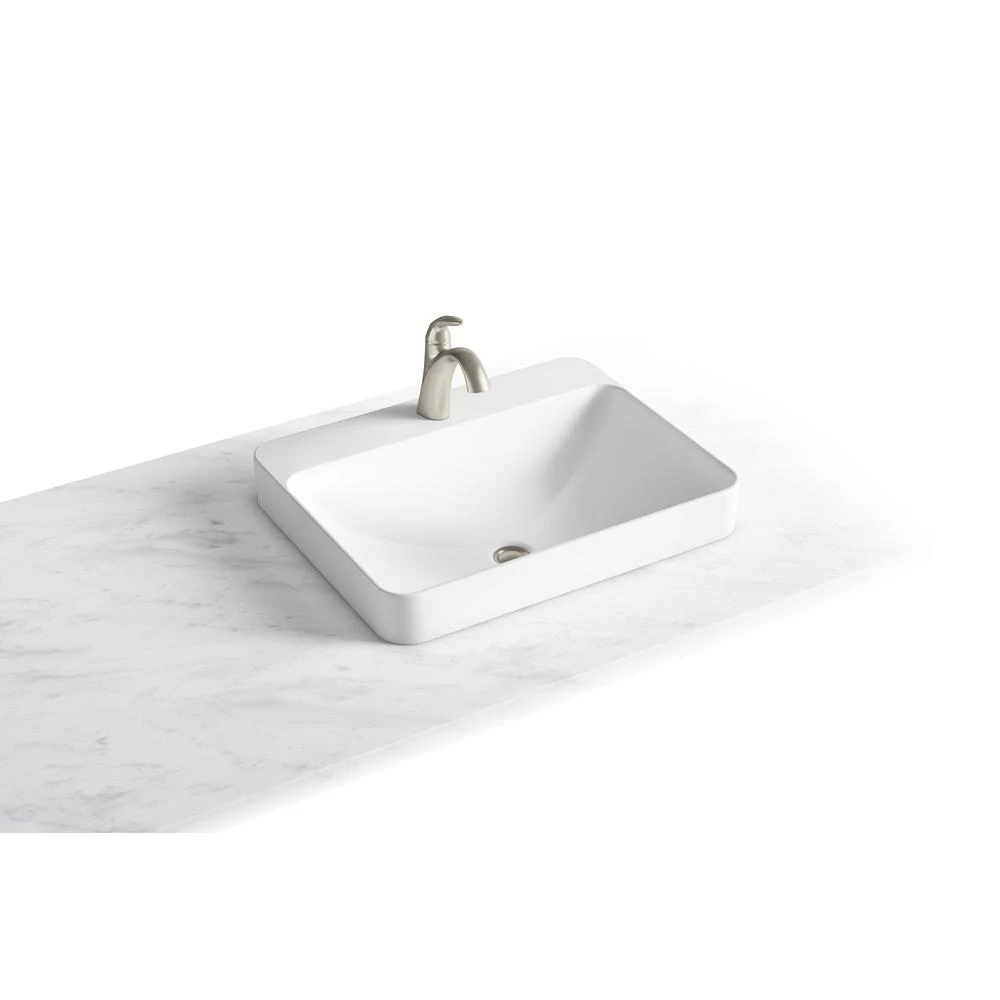 Sleek and contemporary, the Vox Rectangle vessel-style sink features a wide, shallow basin and rounded edges in true minimalist fashion. Countertop installation ensures this sink will stand out in your bathroom as a striking focal point.